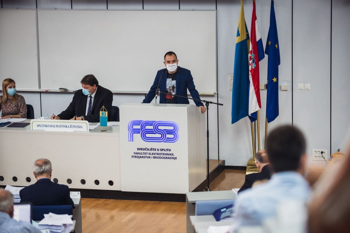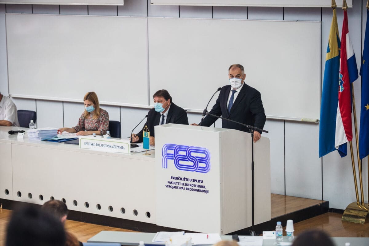 18. točka 32. sjednice Županijske skupštine SDŽ je bilo izvješće o radu Župana Splitsko-dalmatinske županije. Sjednica se prvi put održava u dvorani splitskog FESB-a.