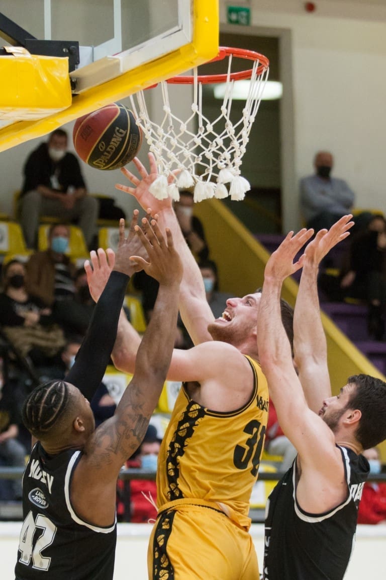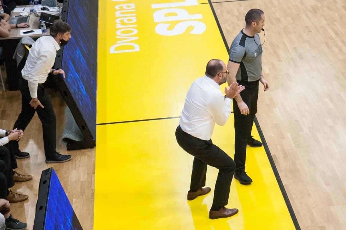Muče se Žuti, ulaze u završnicu, stalno imaju akcije za koš ali lopta neće kroz obruč. Šest minuta do kraja drže gosti plus deset i sada je za igrače Ivice Skelina biti ili ne biti. Domaći pucaju trice 23/9. Ne ide, ne ide, kraj utakmice. Stekli smo dojam da je Split mogao do pobjede u ovom susretu.