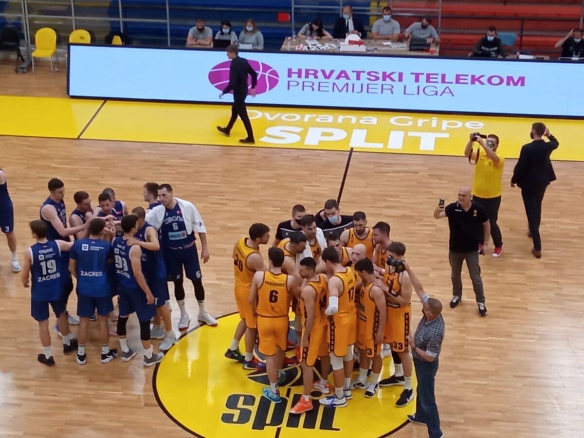 Uzvrat će biti u petak u Zagrebu, a igra se na dvije pobjede. Eventualna treća utakmica za prolaz u finale igra se opet na Gripama. Split je nastupio bez Blaža Mesičeka, a Cibona bez Roka Prkačina.