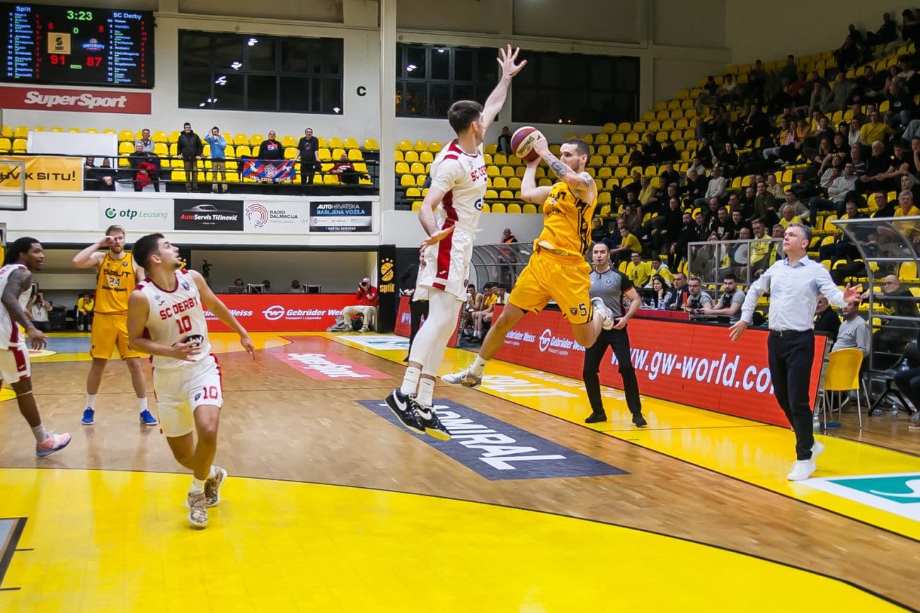 Košarkaši Splita danas su od 18 sati igrali protiv SC Derbyja na Gripama u sklopu 16. kola AdmiralBet ABA lige u skupini A, a slavili su Žuti rezultatom 102:94 nakon produžetaka. Prva je četvrtina pripala Splitu (26:13), a preostale tri SC Derbyju (23:24, 19:22, 17:26), dok su produžeci otišli na stranu Splita (17:9).