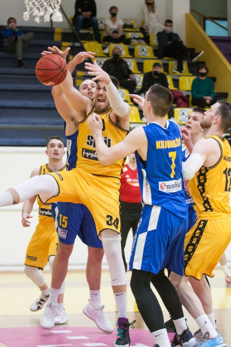 Tek dvije i pol minute prije kraja Split se odvojio na plus pet zahvaljujući Marinu Mariću koji je zabio iz reketa i još jedno slobodno bacanje. Malo poslije tricu je zabio Čampara i Slavonci su slomljeni. Marić i Luka Babić su prva imena teškog susreta za Žute, pobjede koja je zaslužena i teškom mukom izvojevana. Tek minutu prije kraja susreta Split se razvio do 10 koševa razlike i zaključio utakmicu.