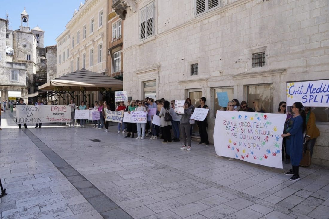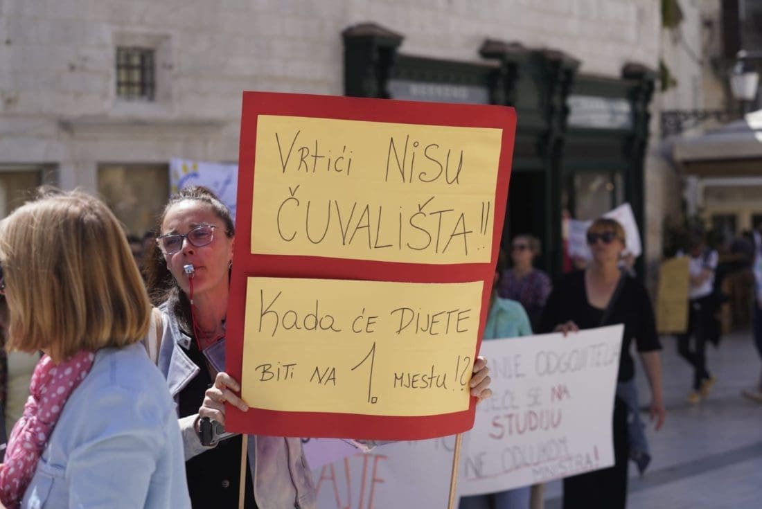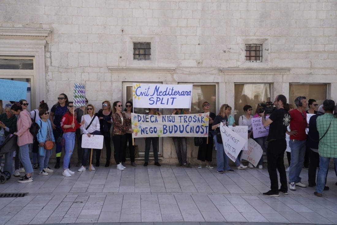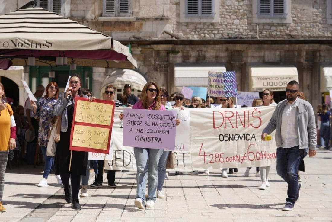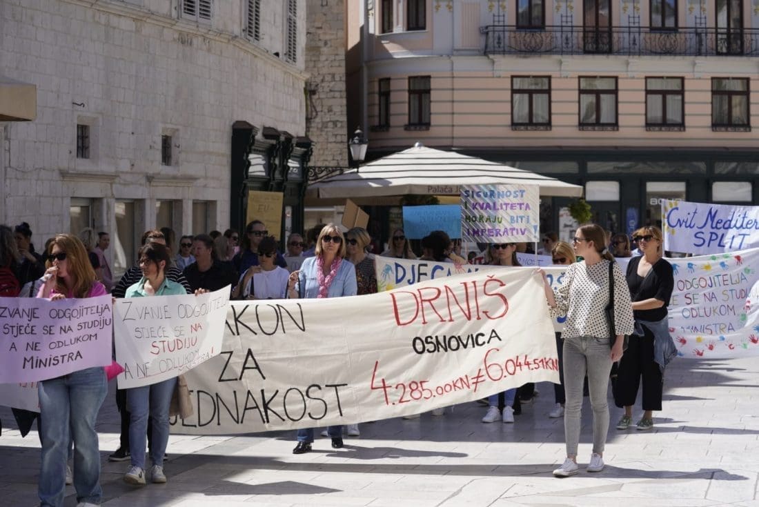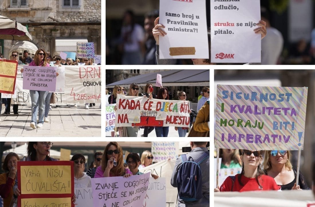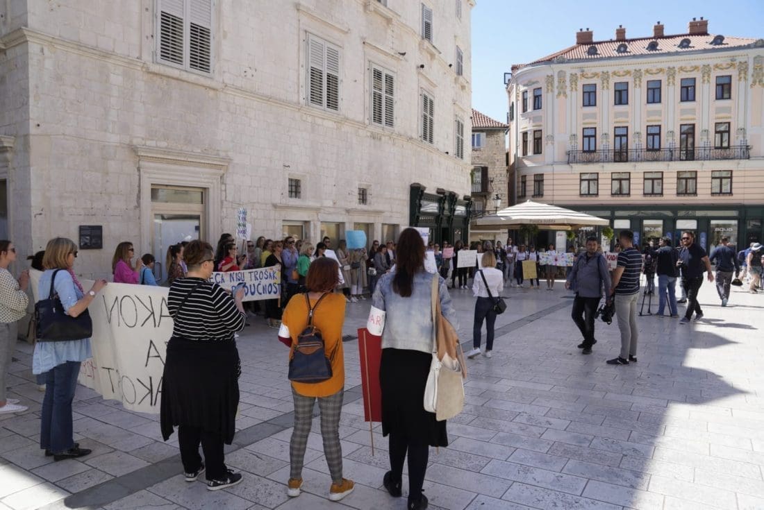 Naime, u gradu podno Marjana su se okupili odgojitelji i zaposlenici u vrtićima. Javnost su upozorili na loše izmjene Zakona o predškolskom odgoju i obrazovanju, a shodno tome, sindikati, razne udruge i akademska zajednica smatraju da su izmjene štetne i diskriminirajuće za ove zaposlenike.