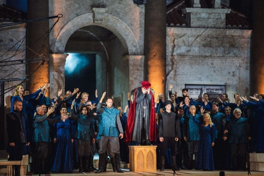 Sinoć je svečano otvoreno 68. Splitsko ljeto, a premijerni je operni naslov opera „Simon Boccanegra“. Načelno potpuno verdijevska politička priča, protkana borbom za preporod i mir, ukrašena je tmurnim bojama spletkarenja, urota i neizlječiva gubitka. Maestro Ivo Lipanović i redatelj Krešimir Dolenčić uhvatili su se ukoštac s izuzetno zahtjevnim zadatkom – na jednom od najljepših, ali i najneprilagođenijih prostora za ovakvu operu – Peristilu, trebalo je dočarati iznimno kompleksnu radnju s mnogo likova i kompliciranih zapleta, uskladiti Zbor i Orkestar na dvjema različitim lokacijama, oslikati ljudsku tragediju konflikta i snagu ljubavi i oprosta. I uspjeli su, i to maestralno.