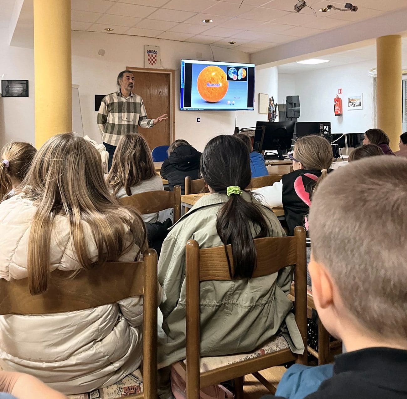 Za dvadesetak učenika nižih razreda OŠ Bol je u Gradskoj knjižnici Marka Marulića – Brodarica održano predavanje o Sunčevom sustavu, ali i likovna radionica oslikavanja planeta! Te je aktivnosti vodio student fizike splitskog PMF-a Duje Barić, član udruge Zvjezdano selo Mosor i astronomske sekcije Fizikalnog društva Split. Duje je pored toga predavanje iste tematike na istom mjestu održao i za šezdesetak učenika viših razreda splitske OŠ Kman Kocunar. Planirano promatranje Mjeseca i planeta Saturna s terase knjižnice, moralo je nažalost otpasti zbog naoblake.